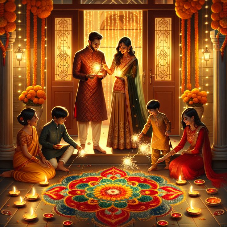 चूंकि यह कार्तिक के हिंदू महीने में अमावस्या का दिन था, इसलिए जिस रात वे वापस आए, अयोध्या के लोगों ने दीये (मिट्टी के दीये) जलाकर और अपने घरों को रंगोली (रंगीन पैटर्न) से सजाकर भगवान राम का स्वागत किया।
