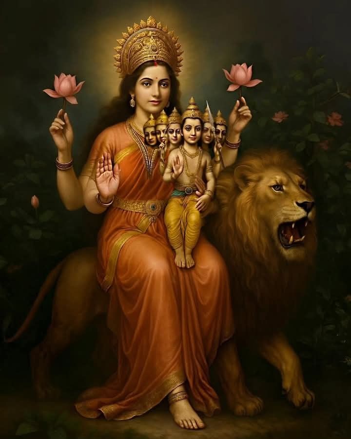 On the fifth day of the Hindu festival of Navratri, which usually falls in the months of Chaitra (March or April) or Ashwin (September or October), people worship Maa Skandamata, the fifth manifestation of the Hindu goddess Durga. The term “mata” denotes mother, and the word “Skanda” refers to Kartikeya, the son of Lord Shiva and Parvati. For this reason, Maa Skandamata is considered the mother of Lord Kartikeya, also called Skanda, who is also called Murugan or Subramanya in certain regions of India. In Hindu mythology, Skandamata is portrayed as a lion-riding woman with four arms who is holding her son Skanda, also known as Kartikeya, on her lap. She is occasionally shown clutching a bell or a lotus blossom in her palms.